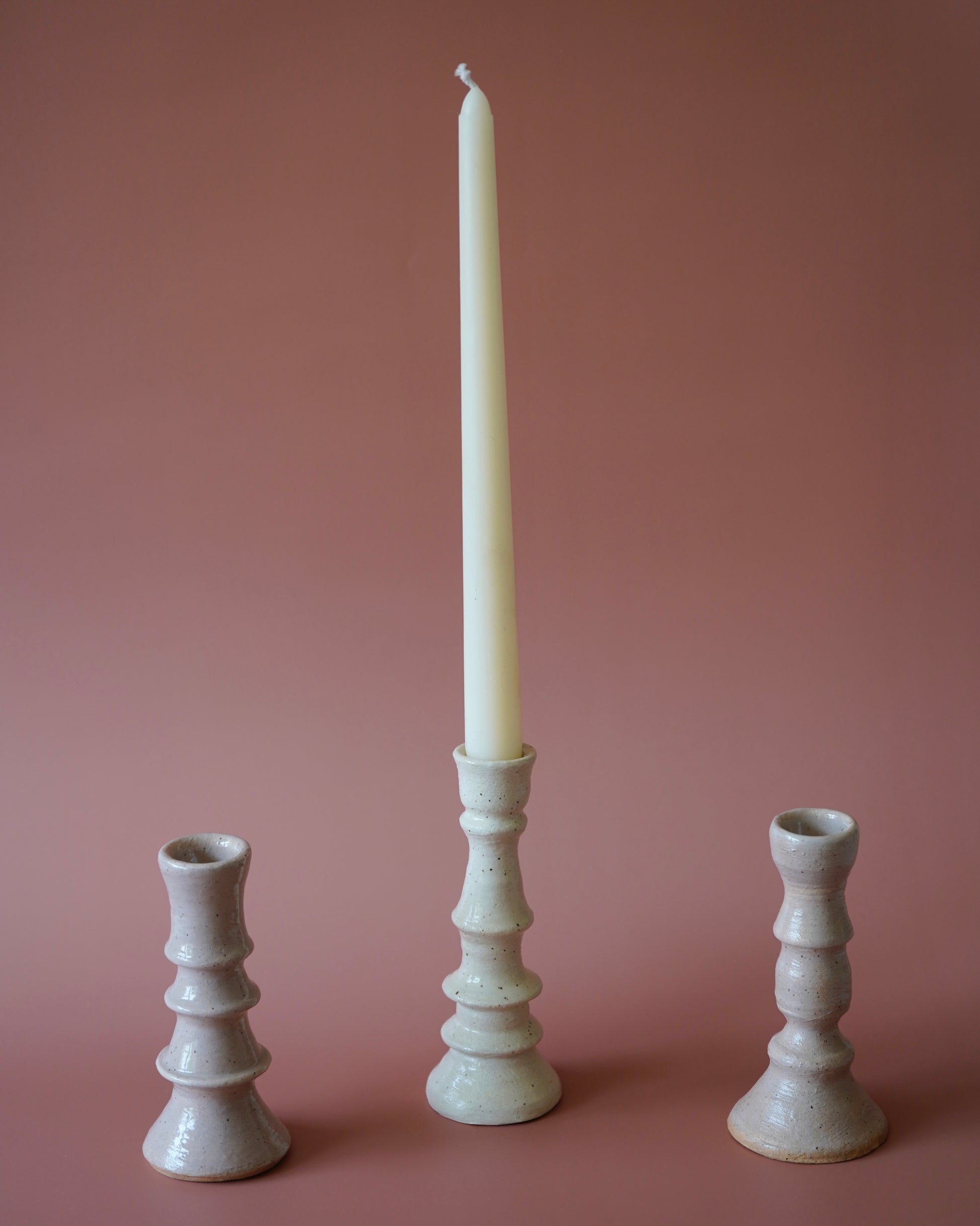 Sculptural ceramic candleholders handmade on the wheel and designed to fit a variety of tapered and straight candles.